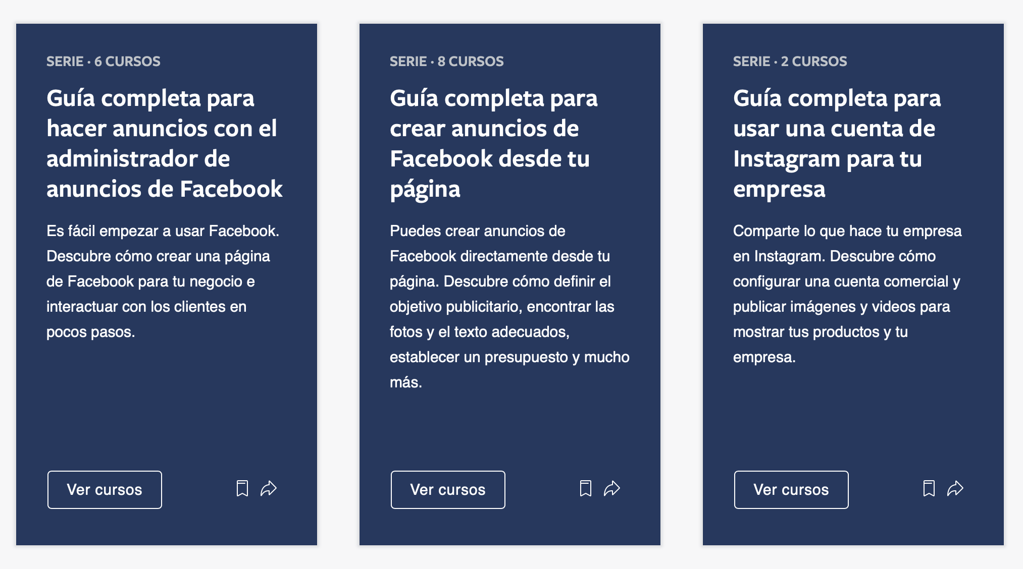 Igualmente Facebook ofrece cursos de Cómo crear Anuncios, Cómo Alcanzar tus Objetivos y Convertirlos en potenciales clientes, Cómo Optimizar tus Videos para los celulares móviles y muchos cursos más con Certificación Verificada de “ Facebook BluePrint”