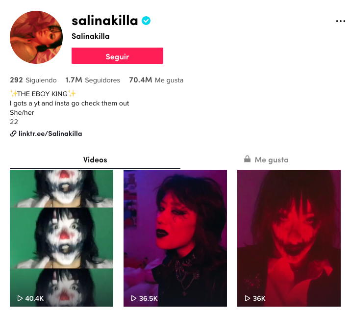 Una cuenta que de seguro te hará un verdadero adicto a TikTok. Salinakilla realiza extrañas coreografías y manipula su mirada para hacer videos hipnóticos. ¿Raro?, bastante.