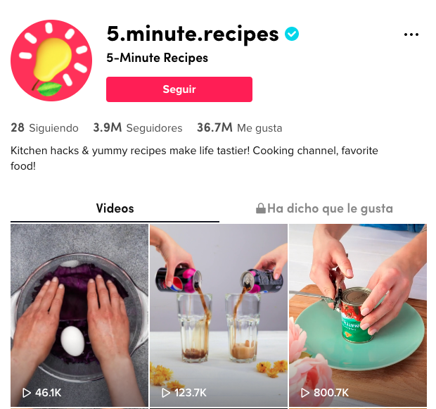 Lo dice el nombre: recetas de cinco minutos que te sacarán de un apuro o saciarán el antojo que tenés guardado desde hace unas semanas. Sin embargo, donde se saca un 10 este perfil es en los tips que te da para facilitarte el trabajo (como la forma más fácil de cortar una piña, o pelar una papa).