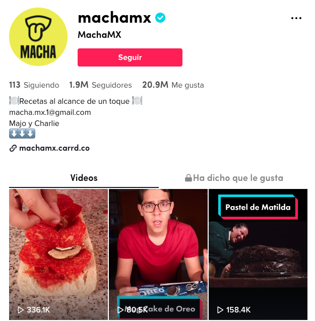 Tiene más de 2 millones de suscriptores en su canal de YouTube y 1 millón y medio de seguidores en Instagram. Debutó en TikTok en agosto de 2019 con una receta de zapallitos que «comprimió» en una edición de 60 segundos, y ya suma casi 15M de Me Gusta.